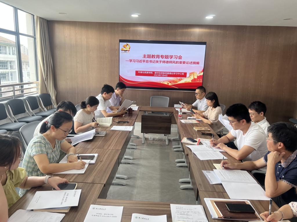 7月4日下午,环资院、碳中和公司党委召开理论学习中心组(扩大)学习会,围绕“学习习近平总书记关于师德师风的重要论述摘编”进行专题学习。会议由公司党委书记侯锡铭主持。