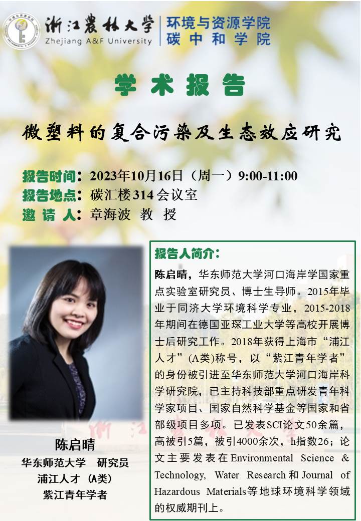 报告地点:碳汇楼314会议室
