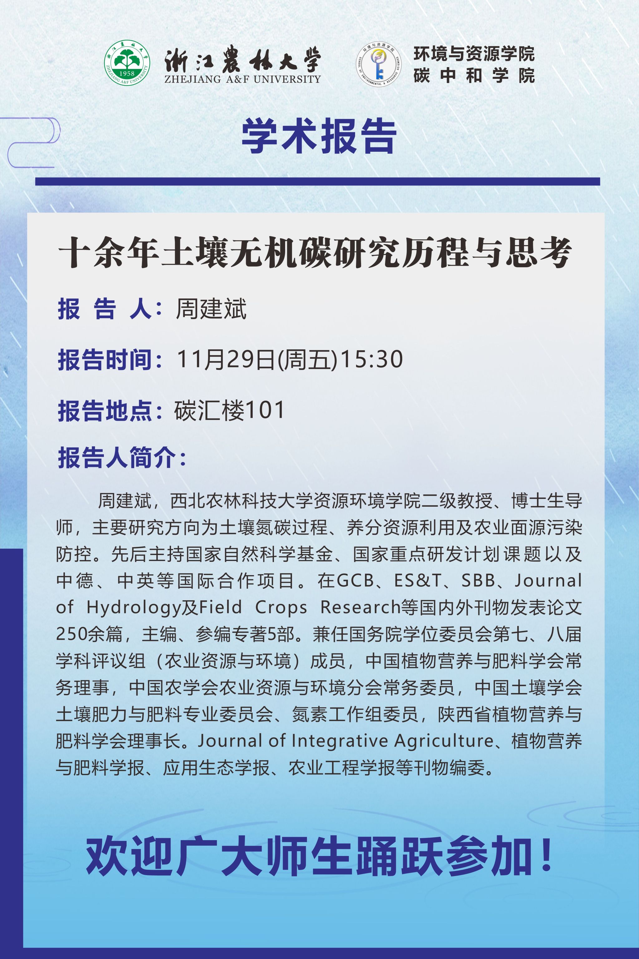 周建斌,西北农林科技大学资源环境公司二级教授、博士生导师,主要研究方向为土壤氮碳过程、养分资源利用及农业面源污染防控。先后主持国家自然科学基金、国家重点研发计划课题以及中德、中英等国际合作项目。在GCB、ES&T、SBB、Journal of Hydrology及Field Crops Research等国内外刊物发表论文250余篇,主编、参编专著5部。兼任国务院学位委员会第七、八届学科评议组(农业资源与环境)成员,中国植物营养与肥料学会常务理事,中国农学会农业资源与环境分会常务委员,中国土壤学会土壤肥力与肥料专业委员会、氮素工作组委员,陕西省植物营养与肥料学会理事长。Journal of Integrative Agriculture、植物营养与肥料学报、应用生态学报、农业工程学报等刊物编委。