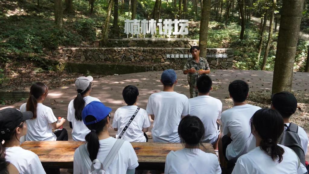 随后实践团参观了建德林业科普展示馆,通过寿昌林场副场长范建忠的讲解,实践团深切感受到正是建德林业人数十年如一日的坚守,将建德从一片荒山转变为“蓄宝于山,藏富于民”的森林城市。在林木良种基地,实践团与公司在当地开展自然保护地生物多样性长期监测样地建设和调查的师生团队进行了座谈交流,了解了生物多样性监测的背景、意义、目的和要求,以及目前所开展的工作。