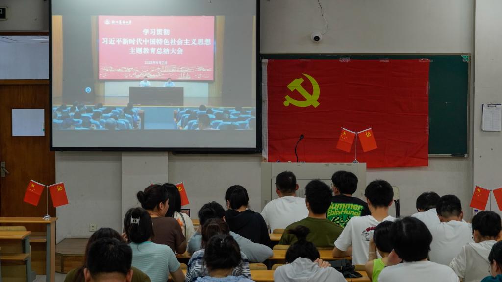 9月7日下午,K1体育组织师生党员在学4-110线上观看K1体育“学习贯彻习近平新时代中国特色社会主义思想主题教育”总结大会。