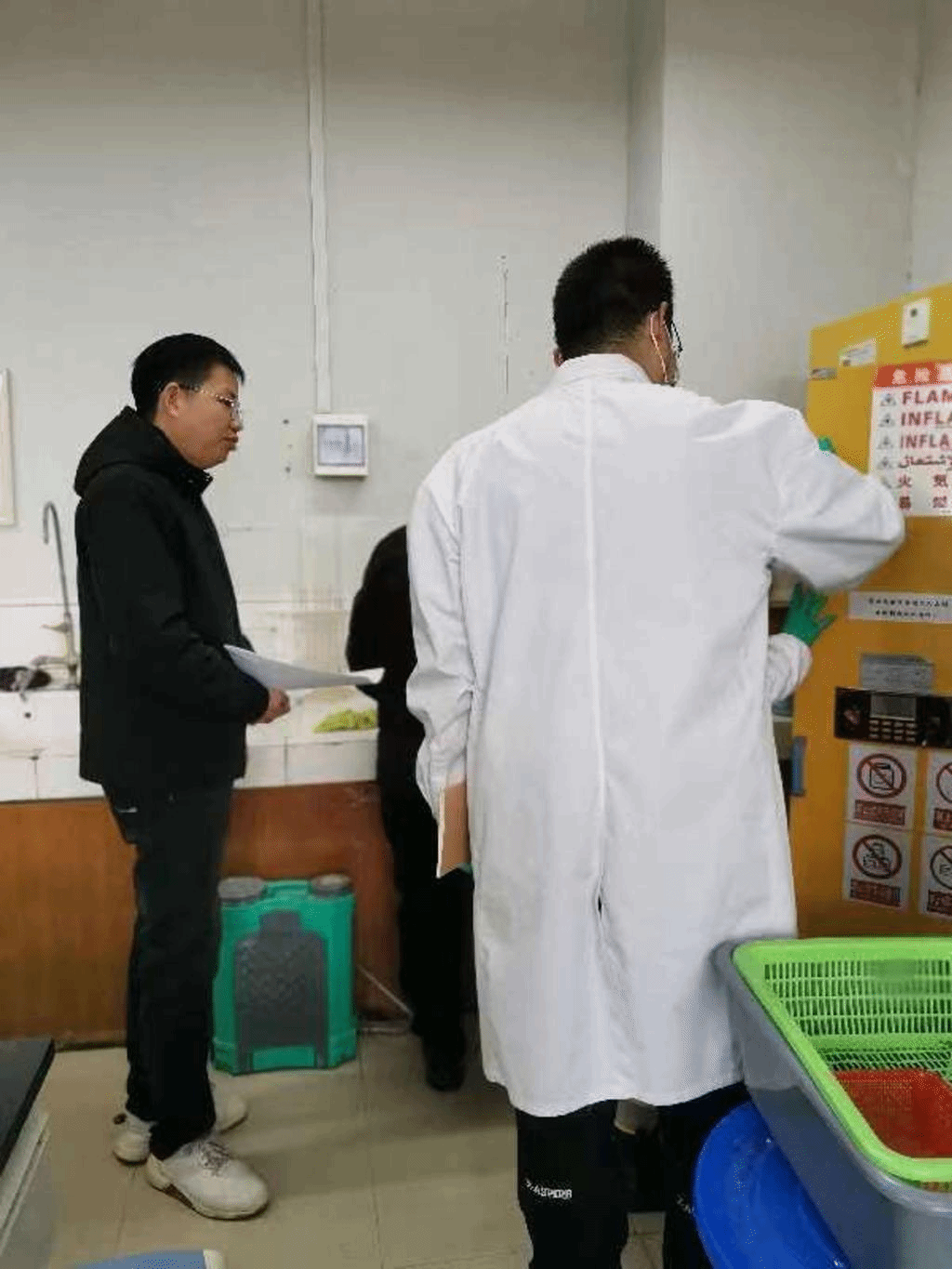检查小组对全院管制类化学品柜实验室进行全覆盖摸排,重点关注台账记录、规范存放等日常使用保管情况,王懿祥副经理现场提出整改意见,限期整改到位,并特别强调各实验室要进一步强化安全意识,切实落实安全责任,提升安全管理水平。