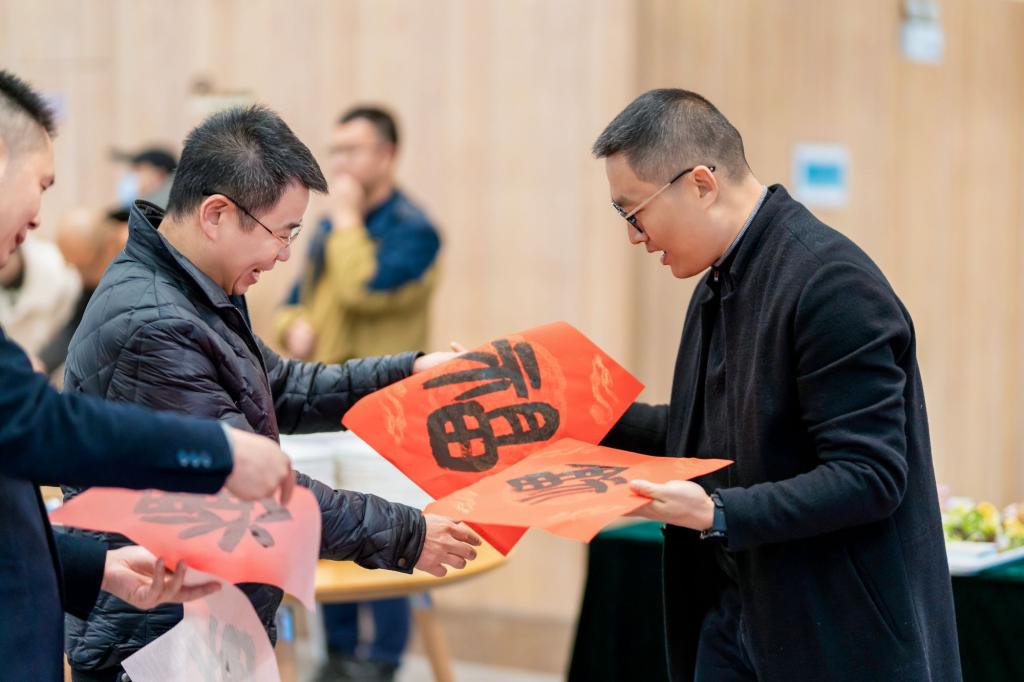 大家包饺子、写福字、剪窗花,现场充满欢乐和温馨。冯华军经理给大家送上美好的新春祝福,侯锡铭书记将“福”字送到每位老师的手中。“福气满满”、“锦上添花”、“惊喜抽奖”互动游戏将活动推向一个个高潮,老师们沉浸在愉快、难忘的美好时光。