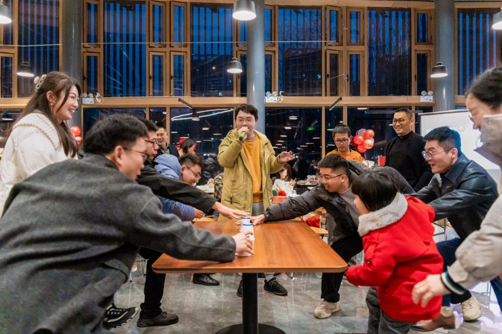 2024年1月19日下午,K1体育全院教职工大会后全体教职工齐聚银杏餐厅参加“顺势而上 再攀高峰”新年特别活动。