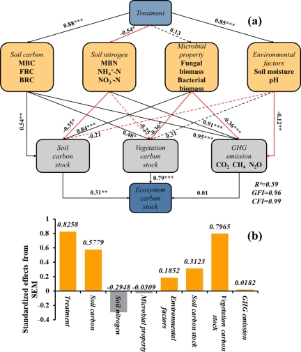近年来,生物肥作为一种高效且环境友好的替代品,因其在提升土壤健康、促进养分利用和植株生长方面的显著优势而受到关注。然而,其在森林生态系统中,尤其是快速生长、碳周转率高的毛竹林中仍研究不足。本研究围绕“生物肥与化肥在毛竹林生态系统尺度碳库(包括植被碳、土壤有机碳和微生物残体碳)上的差异效应”这一核心科学问题,开展了野外试验,系统评估了两类肥料对碳储量及温室气体排放的影响。通过试验筛选出兼顾生态效益与经济效益的施肥方法,为竹林可持续管理提供科学依据和实践路径。
