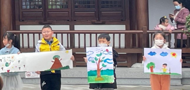 活动当天,春雨绵绵,凉风习习,但小朋友们的笑容里依旧保持着对本次活动的期待和热情。植树前,小朋友们通过画笔描绘了自己对环保的理解,志愿者们热心解答问题,介绍了森林的功能。植树过程中,志愿者还向小朋友们普及了多种树木种植的相关知识,并协助家庭进行植树。