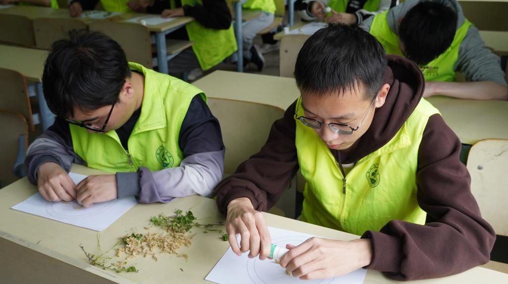 除了常规的绿地管护安排外,此次还增设了手工制作徽章环节。负责人介绍完制作步骤后,志愿者们便领取相应的材料,全神贯注地投入到徽章制作中。志愿者们选用合适的材料,摆放成心仪的图案,并用胶水固定在纸张上,制成了一张张生动且独特的徽章手工作品。志愿者们看着自己的手工作品,脸上也浮现了满足的笑容。