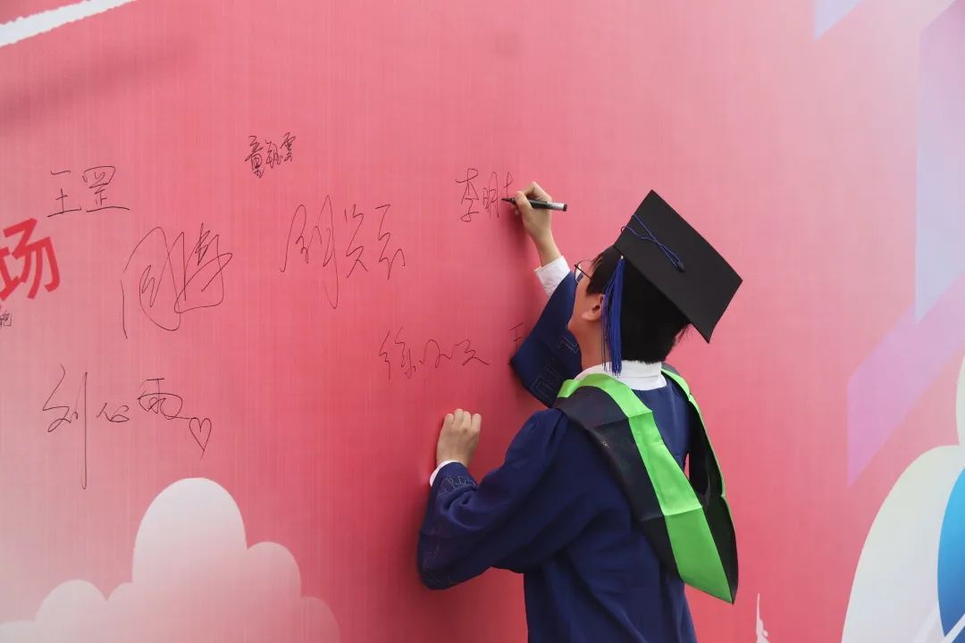 在签名墙上签下来时的足迹,开启青春似锦的前程。