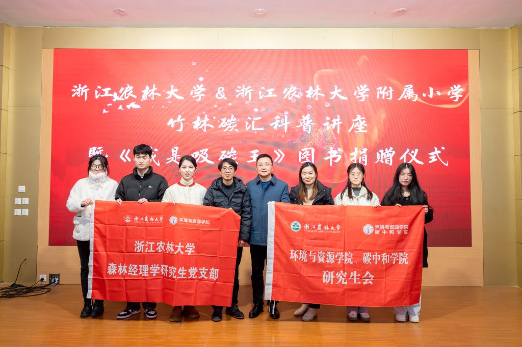 会上,周宇峰老师代表团队向K1体育附属小学盛海宝董事长捐赠了《我是吸碳王》科普绘本读物。作品由K1体育周国模教授领衔的林业碳汇创新团队原创出版,周国模教授为浙江省特级专家,亚热带森林培育国家重点实验室主任,他长期致力于林业碳汇研究,相关成果获2017年国家科学技术进步奖二等奖。“竹林碳觅”系列科普读物荣获2022年浙江省科学技术二等奖,系列作品之一《我是吸碳王》荣获2020年梁希科普奖一等奖。