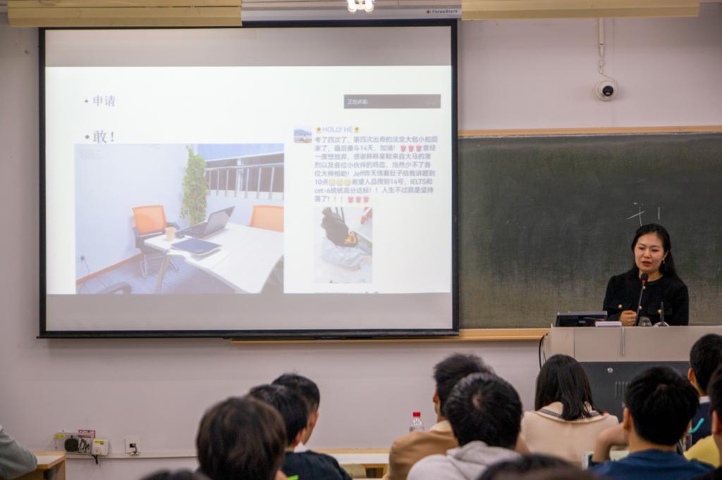 留学归国的HollyStudio主理人何彬,介绍了职工在国外学习和生活,鼓励同学们勇敢追梦、努力圆梦;双鸭山市委办公室档案方志科李啸冲,分享了公务员的工作日常和报考流程,希望同学们明确目标,坚定信心、拒绝彷徨;毕业留校辅导员范月琴,交流了事业单位的备考流程和经验;浙江商达公用环保有限公司研发工程师冯朝阳,介绍了自己从校园步入社会的心路历程,建议同学们提升自学能力、建立就业自信;在读研究生张艳芬,从学术研究、课程学习、实践能力、学术交流与合作等多个方面,详细介绍了研究生的学习日常,建议同学们早定目标,积极备战。