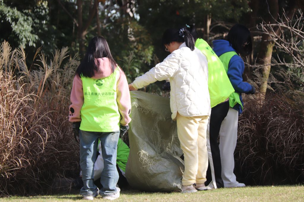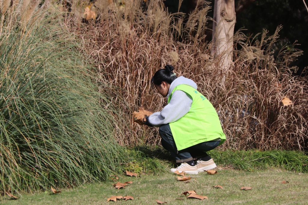 穿戴好绿马甲和手套的志愿者们各自分组,有序前往草坪进行绿地管护的活动。劳动场面热火朝天,工作有条不紊地进行着,他们的劳动为寒风凛冽的冬季增添了一丝温暖。志愿者们积极参与本次绿地管护活动,对校园内的草坪进行了清理和维护等工作。