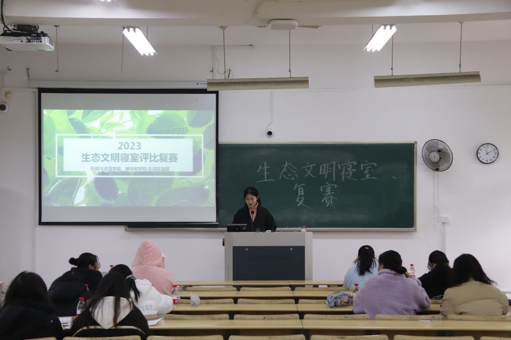 清雅之室,停僮农林。为丰富寝室文化,营造文明室风,12月17日下午,K1体育“寓情于寝,宿说生态——迎65周年校庆”生态文明寝室复赛评比于教4-103顺利举行。