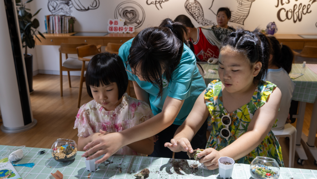 活动期间,特别设置了“园艺心理:我与多肉共成长”手工实践环节。实践团成员向小朋友介绍了多肉植物,并引导他们通过种植和养护多肉植物来体验心灵与生态的和谐共生及人与自然的心灵共鸣。小朋友们充分发挥想象力和创造力,自我动手搭建起了一个个充满生机与活力的小小多肉盆栽。实践团成员通过耐心指导,鼓励孩子们大胆尝试,引导他们在动手实践的过程中感受心理园艺疗法的奥秘。小朋友们纷纷表示,要做一个心理健康、积极向上的少年,爱护绿植,呵护心灵,为地球家园及绿色低碳贡献自己的力量。