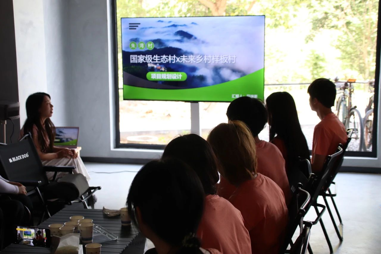 乡野乐创文旅的负责人元彦丽接待实践团一行人。在交流座谈会上,实践团成员们了解学习朱湾村的生态乡村发展规划。乡野乐创文旅以“循环农业,活力农耕”为理念,建设生态农场基地;以“运动+疗愈”为业态,做好高质量文旅服务。乡企合力,带动百姓共建、共发展、共享成果。