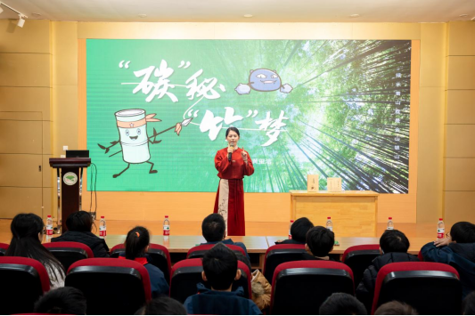 首先播放了《我是吸碳王》的中英文版版本动漫,黄玺洁同学对《“碳”秘“竹”梦》这一作品进行科普讲解,该项作品也在全国林业和草原科普讲解大赛总决赛中斩获多项大奖。同时,也介绍了公司录取通知书等特色竹制产品,引起小朋友们极大兴趣和热烈反响。