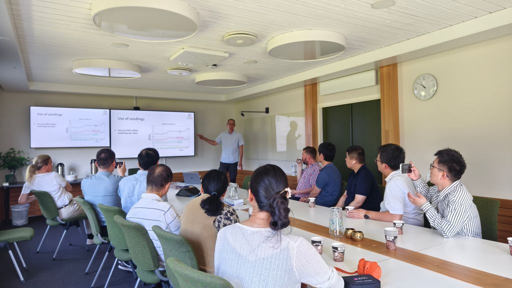 会议结束后,代表团前往瑞典农业大学默奥校区进行学术访问。在默奥植物科学研究中心主任Ove Nilsson教授和Harry X Wu教授的陪同下,参观共享实验室、无菌基因剪辑实验室和大型室内树木表型研究装置等先进设施,并考察了瑞典林业研究院默奥分院研究基地,深入了解当地杨树、欧洲赤松和欧洲云杉的培育情况。代表团访问了该校森林资源管理系,双方就瑞典森林清查样地设计、蓄积量估测等方面的先进技术和模型应用,以及林业可持续管理系统进行了深入讨论交流。代表团还实地考察了当地特色的麋鹿农场和以北欧赤松、欧洲云杉和白桦为主要建群种的次生林。通过考察瑞典林业研究院和当地特色林业,代表团加深了对北欧林业和生态系统的了解。