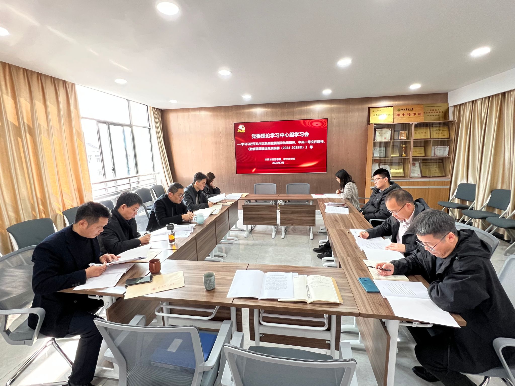 3月11日,环境与资源学院、碳中和公司召开党委理论学习中心组会议,专题学习习近平总书记重要指示批示精神和重要回信精神,学习贯彻2025年中央一号文件精神,学习传达《教育强国建设规划纲要(2024—2035年)》、浙江省新春第一会、全省高公司党的建设工作会议等精神。公司党委书记侯锡铭主持会议。