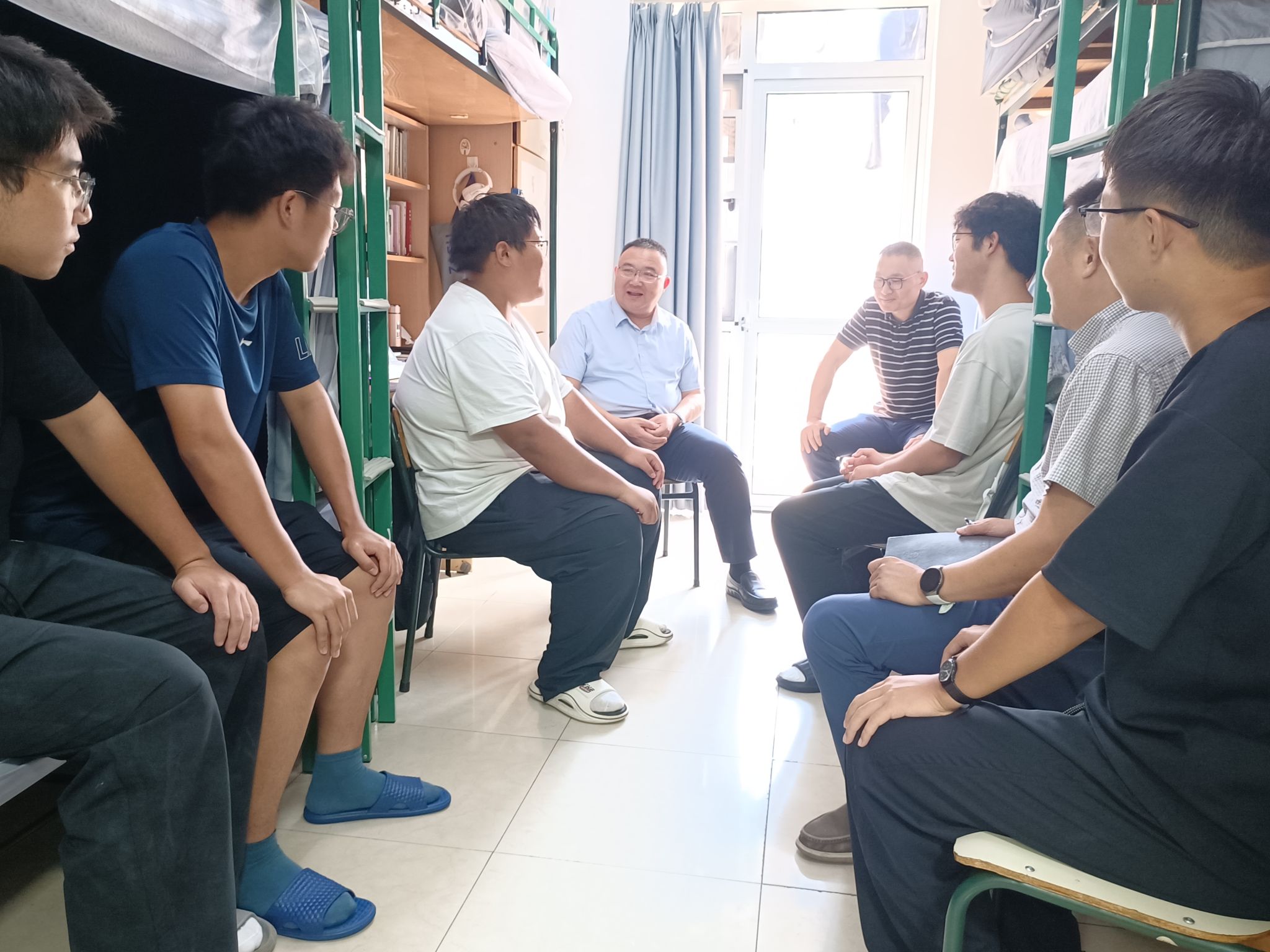 10月9日,公司党委书记朱斌来到A2-509员工寝室,走访慰问2025级新生,了解员工生活适应情况,倾听员工心声,助力新生顺利开启老员工活。环资院负责人陪同走访。